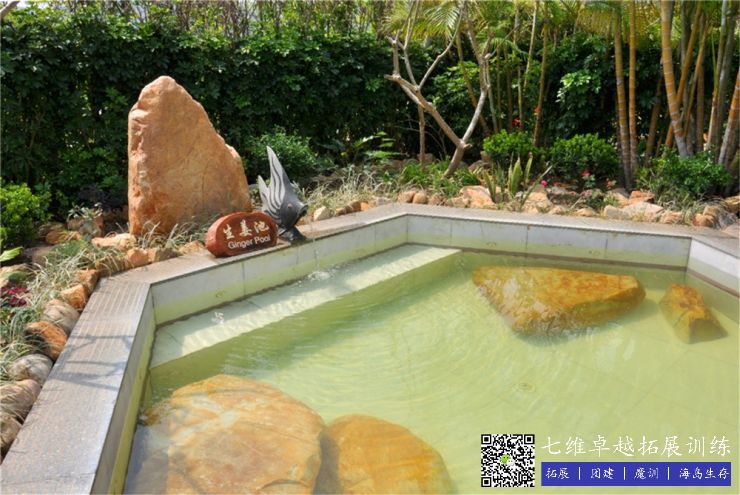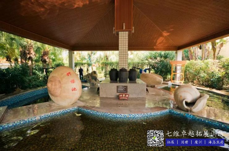 八卦池:八卦鴛鴦池,泉水冷熱(rè)同潭,冷(lěng)泉清涼透澈,洗之玉顏冰肌;熱泉(quán)溫暖滋潤,浴後肌膚潤滑細膩,心情陶然。