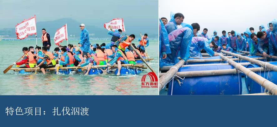 紮筏(fá)泅渡是一個(gè)考(kǎo)驗一個人全方位,腦力、行動力、執行力、耐心等的項目。團隊用竹子、浮桶(tǒng)、繩子等,在規定的時間紮成一隻可(kě)以承載人渡河用的(de)竹筏,所有人(rén)坐在紮好的(de)筏子上,教練檢查(chá)竹筏並確認其是否合格、牢固後,小組成員在海裏劃竹筏到指定地點並安(ān)全返回.