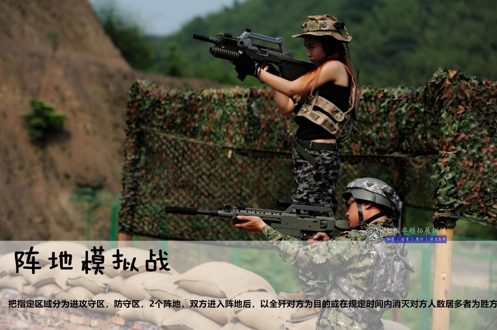內(nèi)容:把指(zhǐ)定(dìng)區(qū)域分為A進攻守區,B防守區,陣地(dì)由(yóu)攻守雙方就地取材自行DIY構築(zhù),攻守(shǒu)方的陣地構築時間為10分鍾,防守方的陣地構築時間為20分鍾,雙方進入陣(zhèn)地後,以全殲對方為目的或在規定時間內消滅對方人數居多者為勝方。