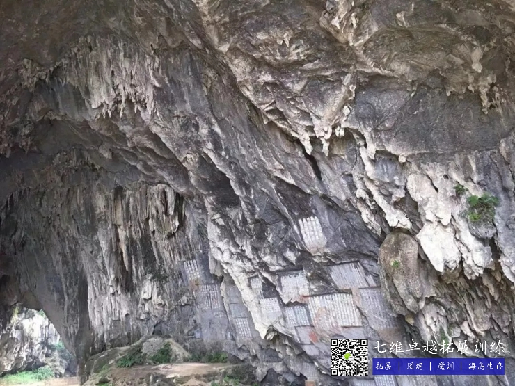 在前洞口的右側有一小溶洞。洞內有一條僅容一人而過的(de)“天(tiān)梯”直通山頂。相傳道(dào)學(xué)高人葛(gě)洪在洞口(kǒu)建有道觀,晝夜煉丹。煉丹成功(gōng)後,葛(gě)洪攜著“仙丹(dān)”沿著洞裏的“天梯”衝(chōng)上山頂騰雲駕霧而(ér)去。故後人稱此洞為“升天洞”。現在洞口(kǒu)依稀(xī)可見道觀的牆基(jī)和煉丹用的石舂(chōng)。據傳葛洪煉丹成(chéng)功後(hòu),曾留下7顆“仙丹”藏於洞內。至今尚未有人尋獲,成為千古之謎。激起了後人到此尋(xún)寶探險的濃厚興趣、