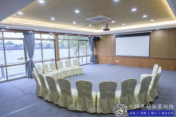 內空80㎡,層高3.2米(mǐ),劇院式(shì)可擺60人,課(kè)桌式(shì)可擺30人(rén),島嶼式可擺(bǎi)6個組,配套專業(yè)音響、燈光、投影儀等,門口有廣闊的湖景,寬敞的活動空間。適合董事會(huì)議、主管會議、教練技術課程(chéng)等。