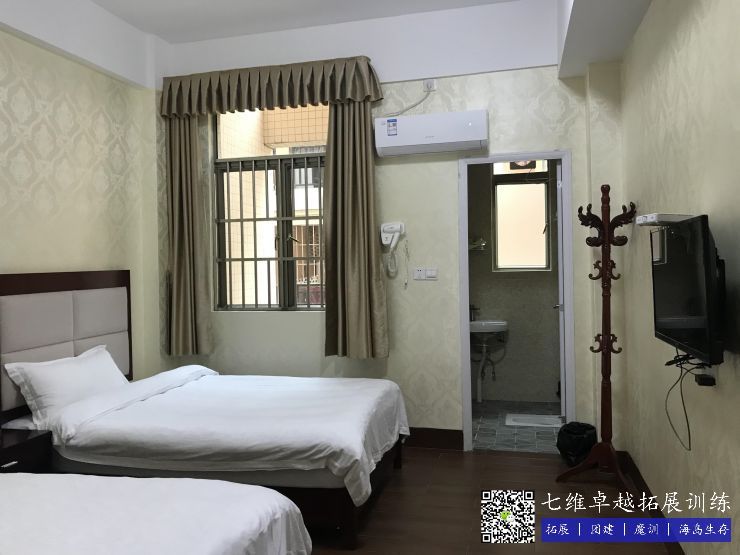 雙人房住宿(xiǔ):可容納80人;電視、空調、獨立衛生間、衝涼房