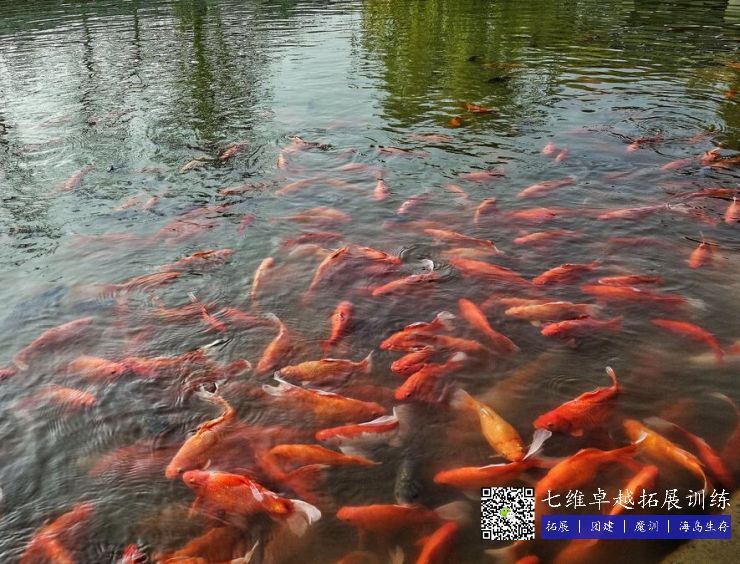 活蹦亂跳的魚群遊走在池中(zhōng)