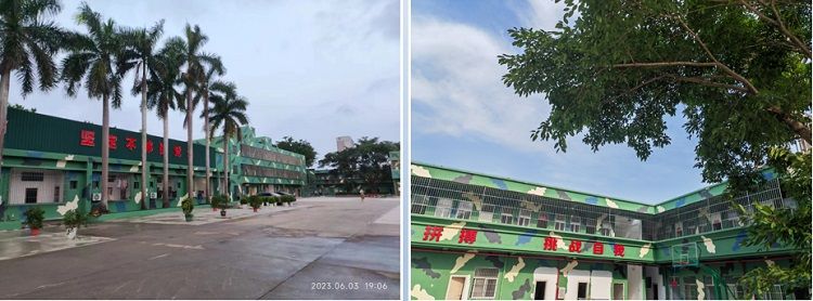 深圳(zhèn)市黃(huáng)埔軍創綜合實踐教育營地,占(zhàn)地麵積10萬餘平方米,能同時接待1800學員食宿及訓練。學(xué)員餐廳、宿舍、多功能課室正規配套、設備齊全。主(zhǔ)訓練場2萬餘平米,風雨棚5千平米。研學勞動基地100畝, 拓(tuò)展訓練營地以勞動基地為基(jī)礎,因地製宜(yí)修建400米障礙及CS野戰訓練場,學生在緊張的訓練之中可以減輕疲(pí)憊、舒緩壓力。