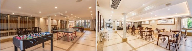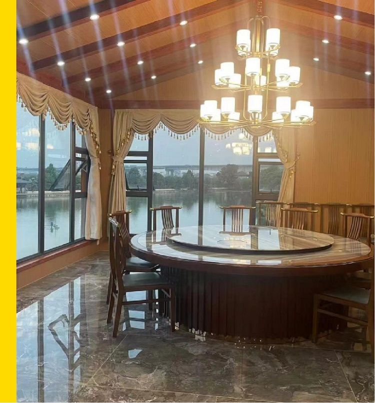 中(zhōng)餐廳位於雁悅岸舍民宿負一層,緊鄰團建大草坪,用餐(cān)環境(jìng)舒適、優雅(yǎ),餐品以粵菜為主,也可根據客戶口(kǒu)味增加辣菜,出品上乘。