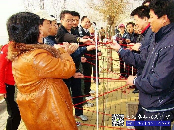 項(xiàng)目簡介:在規定時間內,團隊的所有成(chéng)員,利用特殊的規則用一根長長(zhǎng)的繩子,在不借助任何物品的情況下,穿過一個特殊蜘蛛網,網上的每一個網洞都要至少被(bèi)穿過一(yī)次。