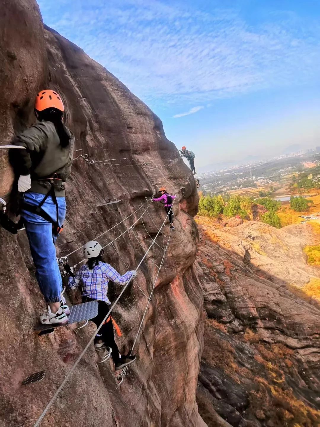 項目簡介:這是普通人都能玩的攀岩——飛拉達。在清遠馬頭山,這個奇特丹霞地貌的地方,就有著(zhe)這好玩刺激的活動(dòng),它被譽為:嶺南第一攀。廣東省內唯一的飛拉達項目——飛拉達是意大利語,意為鐵索棧道,指的(de)是修建在岩壁上,利用(yòng)鐵索,腳蹬的輔助,進行峭壁攀爬的(de)登山方式,索道的部件主要有(yǒu)金屬扶手、梯級、纜索、腳蹬等。這些裝(zhuāng)置讓沒有攀岩能力的爬(pá)山者也能在陡峭的岩壁上行走。