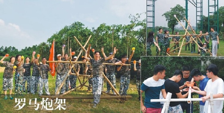 在我們(men)的拓(tuò)展項(xiàng)目中,隊員要在規定的時(shí)間內搭(dā)建好炮台,用裝滿水的皮球代替(tì)石頭,攻(gōng)擊對(duì)方隊員,項目得分高的一方為勝。