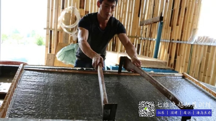 造紙製作(zuò)過(guò)程:削皮—浸泡—漂白—蒸煮—粉碎—抄紙—曬紙等20道工序。