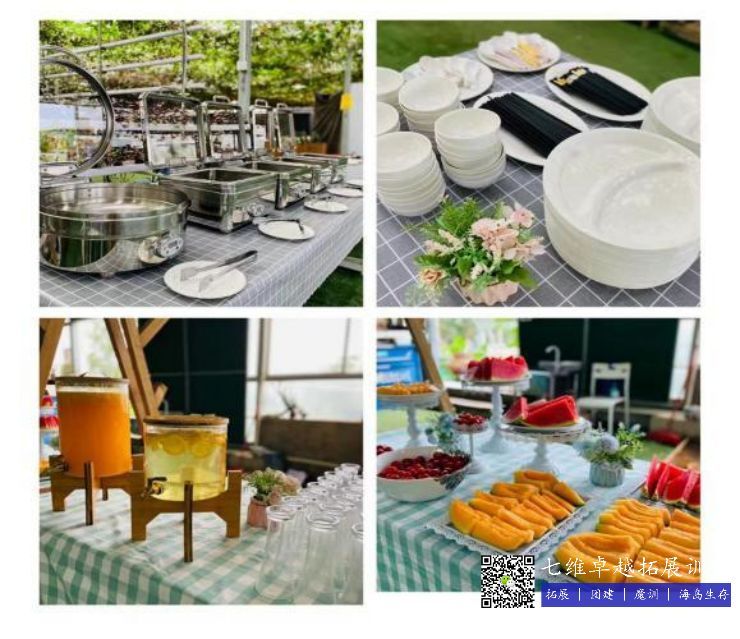 在鄉(xiāng)村田野裏享受著美味的自助餐