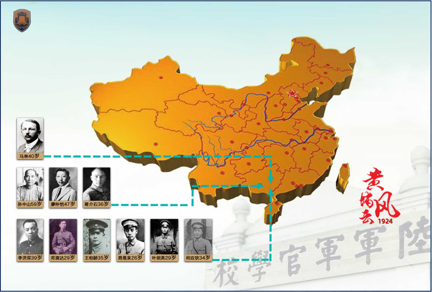 —個有希望的(de)民(mín)族(zú)不能沒有(yǒu)英雄,一個(gè)有前(qián)途的國(guó) 家不能沒有先鋒。走進陸軍軍官學(xué)校,瞻仰那些近 代史上(shàng)孕育無數(shù)精英(yīng)的搖籃,我們回顧(gù)曆史(shǐ),學習 時代偉人,探索黃埔精神!