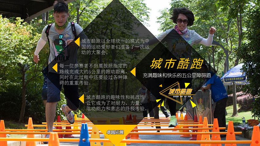 城(chéng)市酷(kù)跑,充(chōng)滿趣(qù)味和快樂的五公裏障礙跑城市酷跑”這項賽事最早發源於美國版《男士健康》雜誌,由美國大兵軍事訓練課程的啟發而創辦出的一項新穎、獨特的多(duō)元素(sù)跑步賽事。與傳統的跑步活動相比,更增加了趣(qù)味性和互(hù)動性。