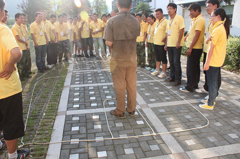 盲人方陣:要求所有成員的(de)眼睛將用眼罩蒙起來,要求在失去視覺的情況下用培訓師交給的一些繩子拚成(chéng)一個麵積最大的正方形,所有人要平均分布在正方形的各條邊(biān)上