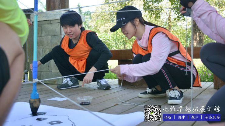 項目簡介:團(tuán)隊隊員齊心協力,依靠團隊(duì)配合,共同(tóng)使用一支特製的道具筆,繪製教練所(suǒ)指定的文字或圖案(àn),時間越短,完成效果越好的團隊,獲得的積分越高。