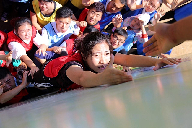 畢業(yè)牆這個項目,使我感覺到“翻越求生牆”訓練是對我們意誌的考驗,4米高的筆直的鐵牆,沒(méi)有任何工具,當時就想著怎麽過去?大家齊心協力共同努力,終於征服了“求(qiú)生牆”,但是更(gèng)讓我無法忘懷的是作為人梯底座的隊員不知肩上、身上受了多少“踐(jiàn)踏”,更讓人敬佩的是為了幫助最後一名隊員順利攀上畢業牆(qiáng),取得最終勝利的隊員(yuán),使(shǐ)同舟共濟的團(tuán)隊精神得到了最好的升華。在最後教練讓當人梯的隊(duì)員站成一(yī)排,當我們看(kàn)到充當人梯的隊員(yuán)肩膀上都是血印的時候,眼淚不經意的流了下來。