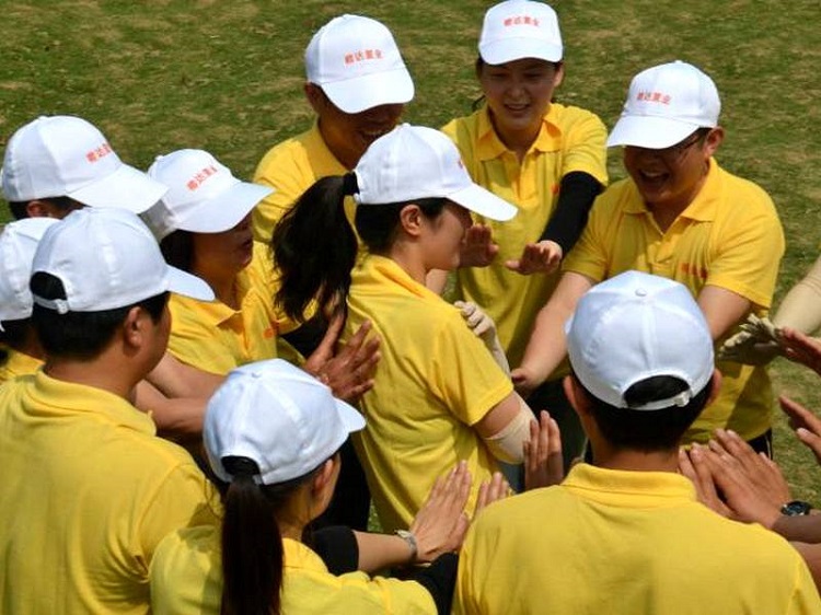 2、學員圍成(chéng)一個圓圈,指定其中一位學員站在圓圈當中。