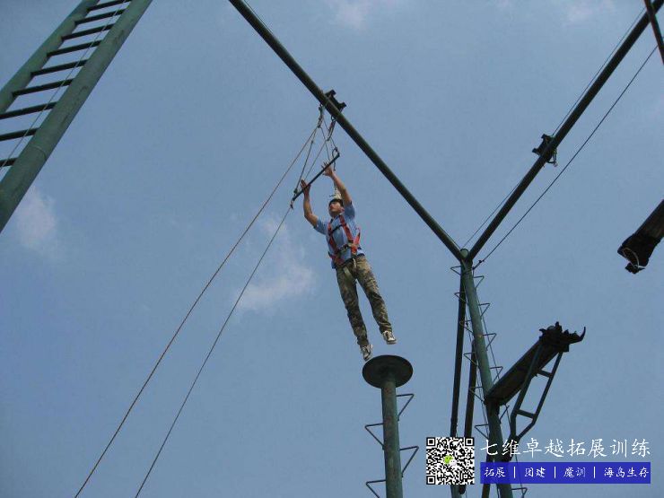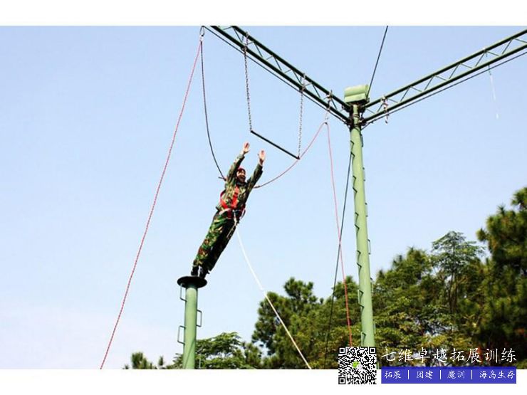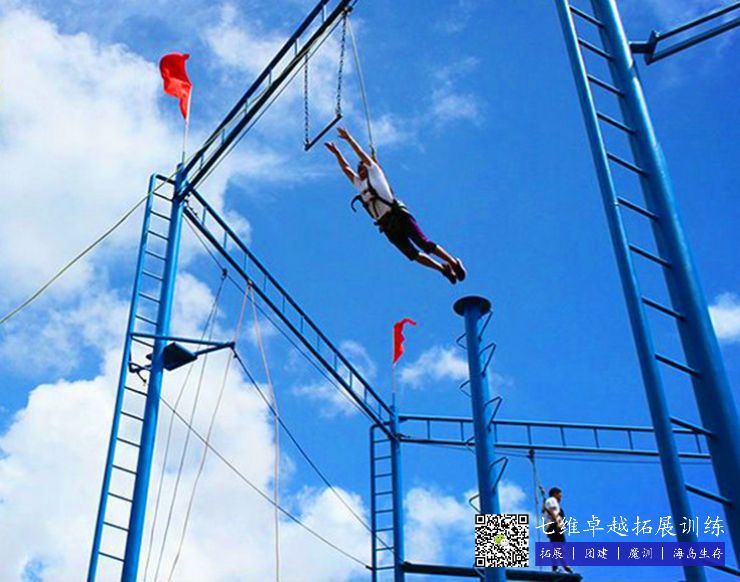 通過空中單杠體會到團(tuán)隊的鼓勵和支持對於個人能力的發揮起(qǐ)的重要作用,從而主動(dòng)地在組織內建立這種良好的文化氣氛。雖然身上掛滿了安全保護措施,但(dàn)在高空跳躍,每個人都會產生或多或少的恐懼感,從杆上站(zhàn)到頂端(duān)的圓盤是(shì)一(yī)次極大的考驗,從圓盤躍起抓杠(gàng)更是一(yī)次心理(lǐ)的挑戰。