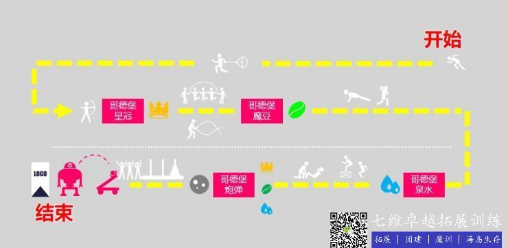 20人1組為例(lì)(搭建5個機關和CrossFit體育項目人員可兼(jiān)職,參考此圖講解)