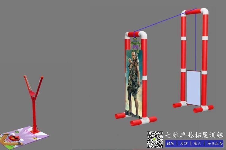 任務5:任務4完成後開始,3名選手進行漢諾塔挑戰,完成漢(hàn)諾塔挑戰後,組員(yuán)被允許將炮彈放(fàng)入彈弓(gōng),去擊打巨人頭部,被擊中後,象(xiàng)征這勝利的企業旗幟將升旗,最先(xiān)升起旗幟的隊伍獲勝!